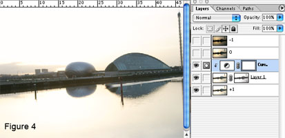 Step 4: All the details of interest (i.e. the sky) contained in the darkest exposures are now stored in the layer masks, so you can discard the darkest exposure layers (image 0 and -1) and the window will look like figure 7 (see next page). If you are not satisfied by the result, you can still edit the curves setting and apply any additionnal ajustement (i.e., levels, saturation) like you want (figure 6).